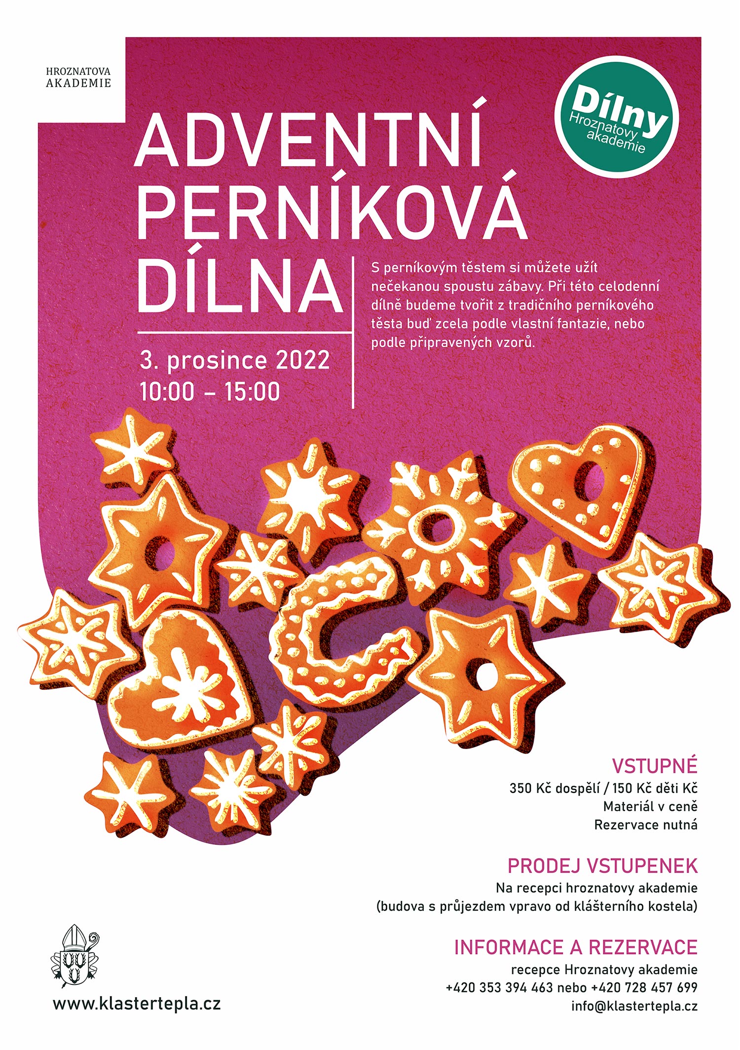 srdečně vás zveme na ADVENTNÍ PERNÍKOVOU DÍLNU, kterou pořádáme v Hroznatově akademii v sobotu 3. prosince 2022 od 10:00 do 15:00 hodin.