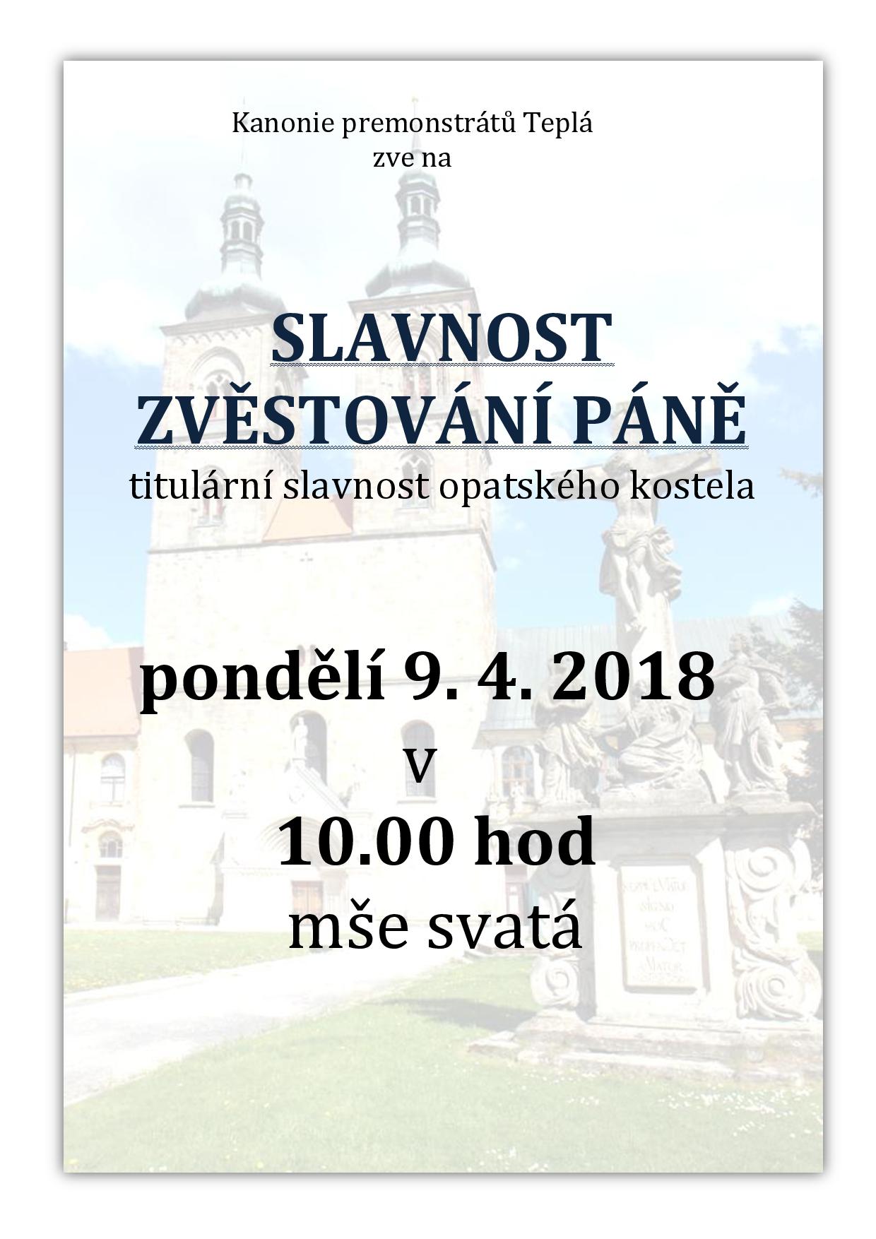 V pondělí 23. dubna 2018 na svátek sv. Vojtěcha bude v klášterním kostele Zvěstování páně mše svatá v 18:00.